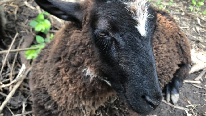 We have a black colored sheep (which looks more like dark brown right now because the tips of his wool are sun-bleached, but underneath it is black) wether lamb named Dan. He is named after Swen’s son, Dan, my great-grandfather. He (the lamb) was born April 12th, one month before Crosby.