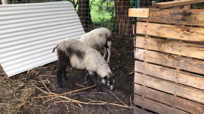 The lambs were pretty quiet as we drove home which was surprising. Once we got home we had to figure out how to transfer them to the paddock that we had set up for them (where Remi the pig and Merv currently live as well).