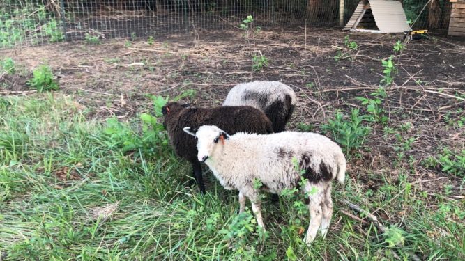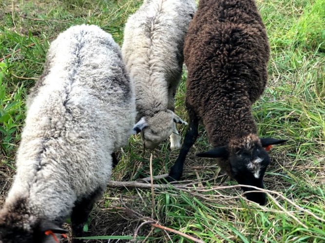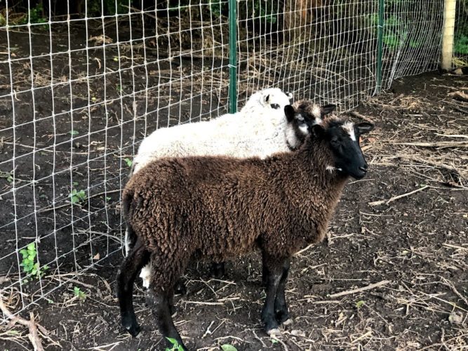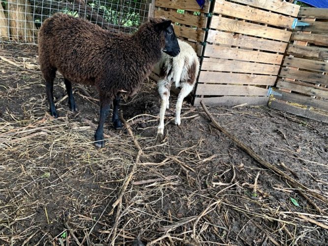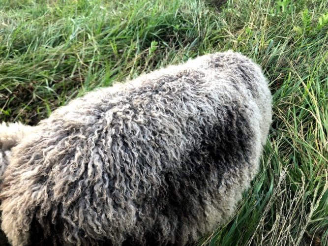I sent a photo of them to my friend Ashley (a good friend from our grad school days in Iowa and she has Finnsheep…that’s where I learned about the breed so I’ve talked to her a lot about our sheep plans) and told her our plan of wethering them. She messaged right back and strongly suggested that we not wether one of them in particular because he has amazing wool and needs to pass on his genetics. haha.