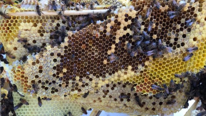 We transferred the bees from the swarm trap to the hive boxes. That was quite the adventure.